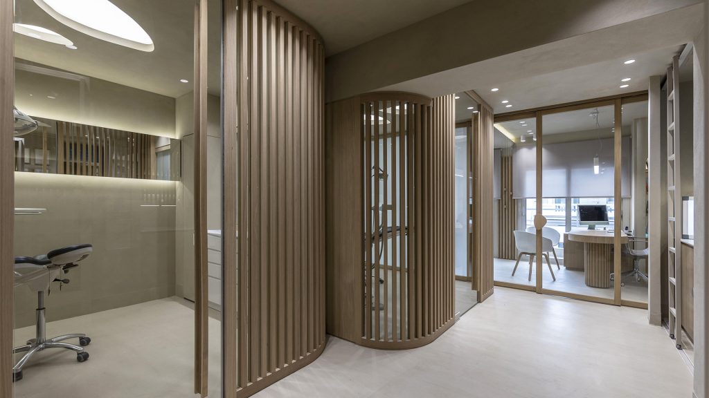 Η αρχιτεκτονική ομάδα T.SQUAREARCHITECTS σχεδίασε μία ορθοδοντική κλινική στη Θεσσαλονίκη βασίζοντας τον σχεδιασμό της στο τρίπτυχο λειτουργικότητα – εργονομία – άνεση. Κεντρική ιδέα είναι η δημιουργία ενός χώρου που παραπέμπει περισσότερο σε κέντρο ευεξίας και φροντίδας. Κύρια χαρακτηριστικά του ιατρείου είναι η πολυμορφικότητα, η διαφάνεια/ημιδιαφάνεια και η καμπύλη φόρμα ως μέσο βελτίωσης της εργονομίας, καθώς οι χώροι τροποποιούνται ανάλογα με την απαιτούμενη χρήση στις ώρες αιχμής του ιατρείου. Τα υλικά όπως το φυσικό ξύλο και μάρμαρο και η πατητή τσιμεντοκονία αποτελούν βασικά στοιχεία του σχεδιασμού, συντελούν στη βιωσιμότητα και δημιουργούν ταυτόχρονα μια ήρεμη ατμόσφαιρα κατά την διάρκεια της ορθοδοντικής εμπειρίας.